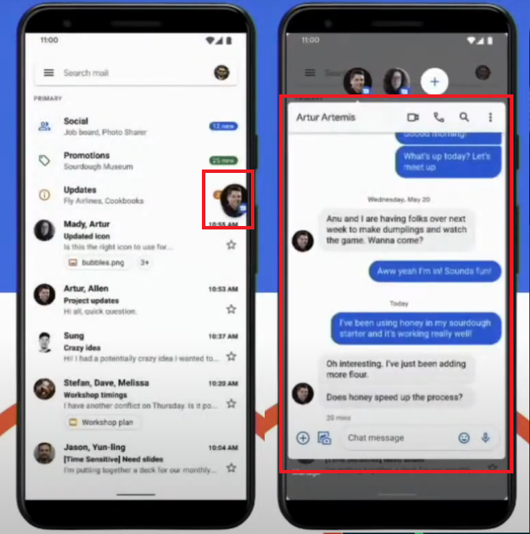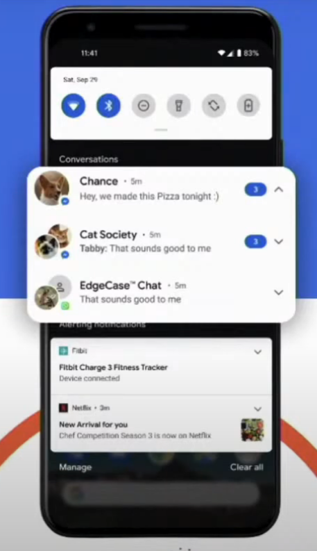 > 대화 공간 : 알림 영역 최상단에 별도의 대화 공간 추가 됨
