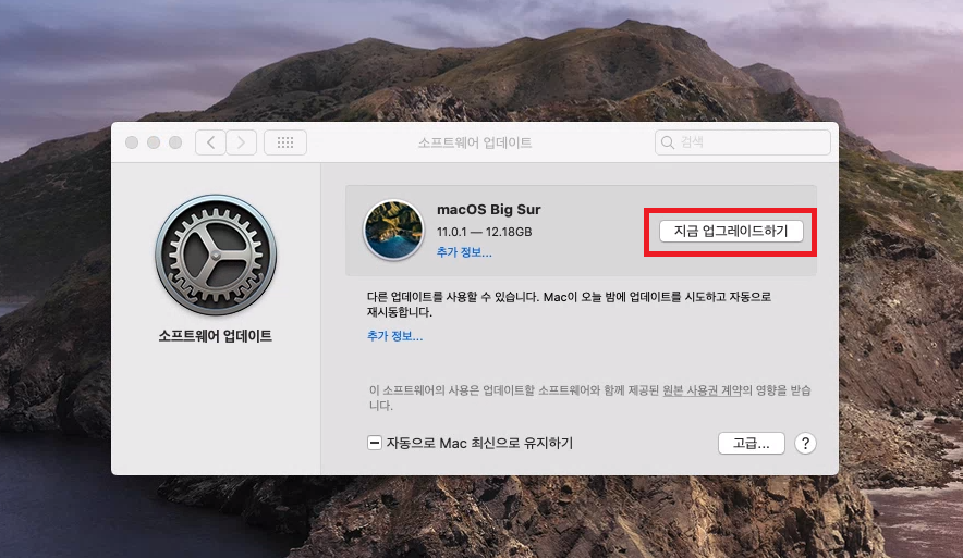 2020년 가을 MAC OS Big Sur 업데이트를 무료로 진행 할 수 있습니다.