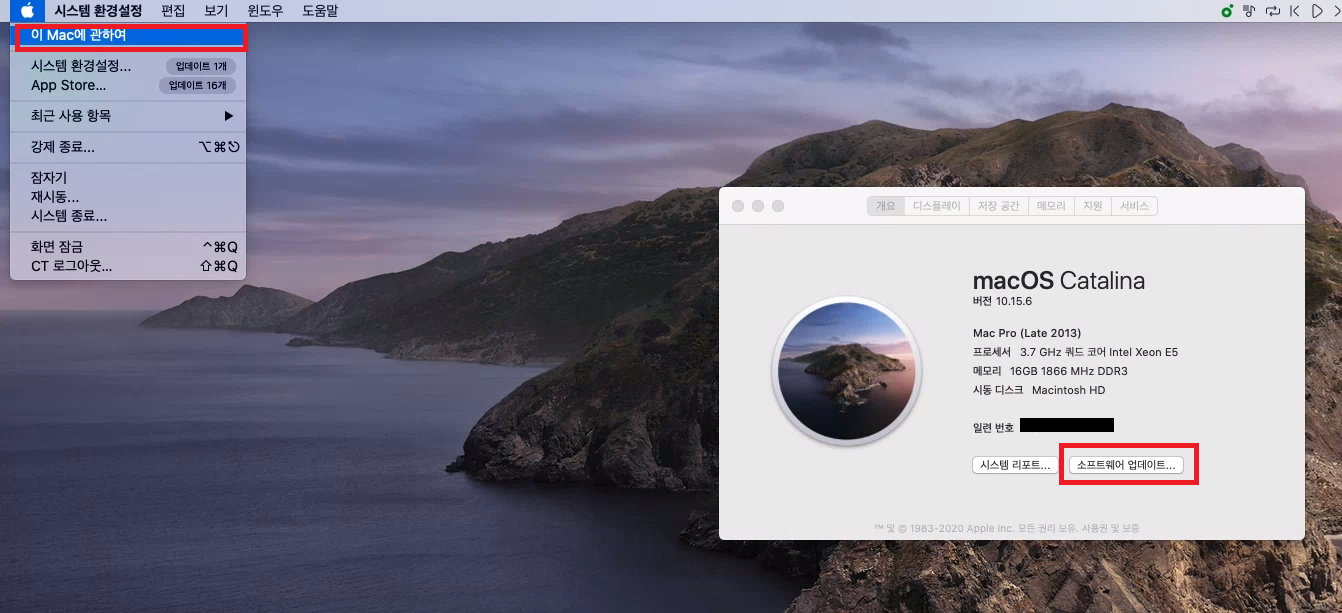 2. MAC 정보창 개요 탭에서 '소프트웨어 업데이트' 선택