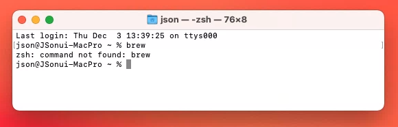 MAC 터미널에서 brew 실행 할 경우 설치되지 않을 경우 아래와 같이 "command not found" 에러 발생됩니다.