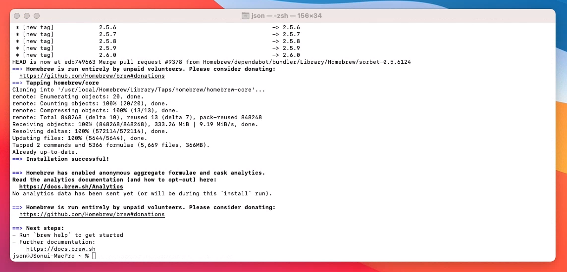설치 완료 후 아래와 같이 Homebrew version를 확인 할 수 있습니다.