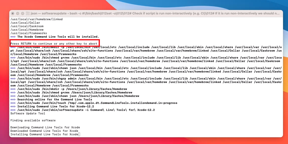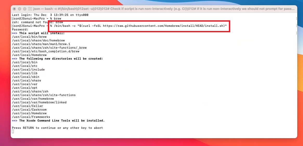 아래 명령어는 참고용으로 Homebrew 홈페이지 내용을 복사한 것으로 변경될 수 있으니 공식 홈페이지에서 복사하는 것이 좋습니다.