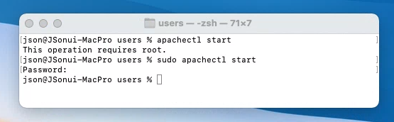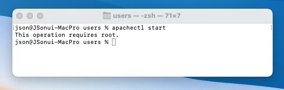 아파치 실행을 위해 아파치 실행 명령어를 입력 할 경우 아래와 같이 "This operation requires root." 에러 발생