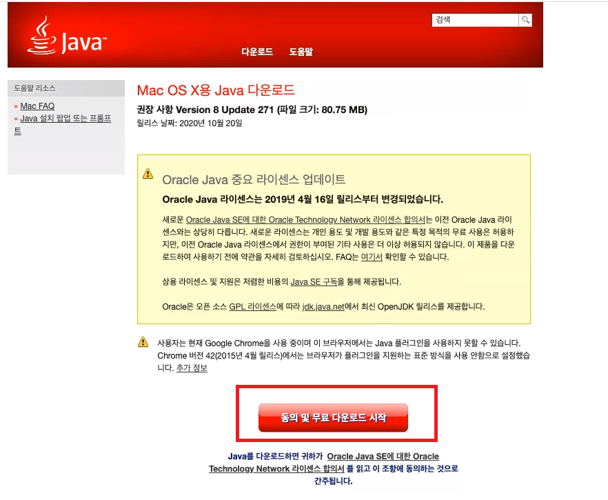 다온로드 페이지 : java.com/ko/download/
