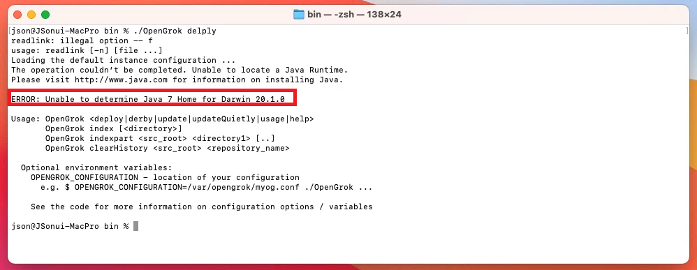 ERROR: Unable to determine Java 7 Home for Darwin 20.1.0