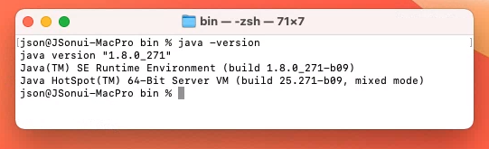 설치 완료 후 별도 환경 변수 설정 없이 터미널 실행하여 자바 버전 확인시 아래와 같이 정상 실행 확인 할 수 있습니다.