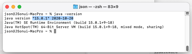 자바 버전 확인 할 경우 아래와 같이 15.0.1 설치 되어 있습니다.