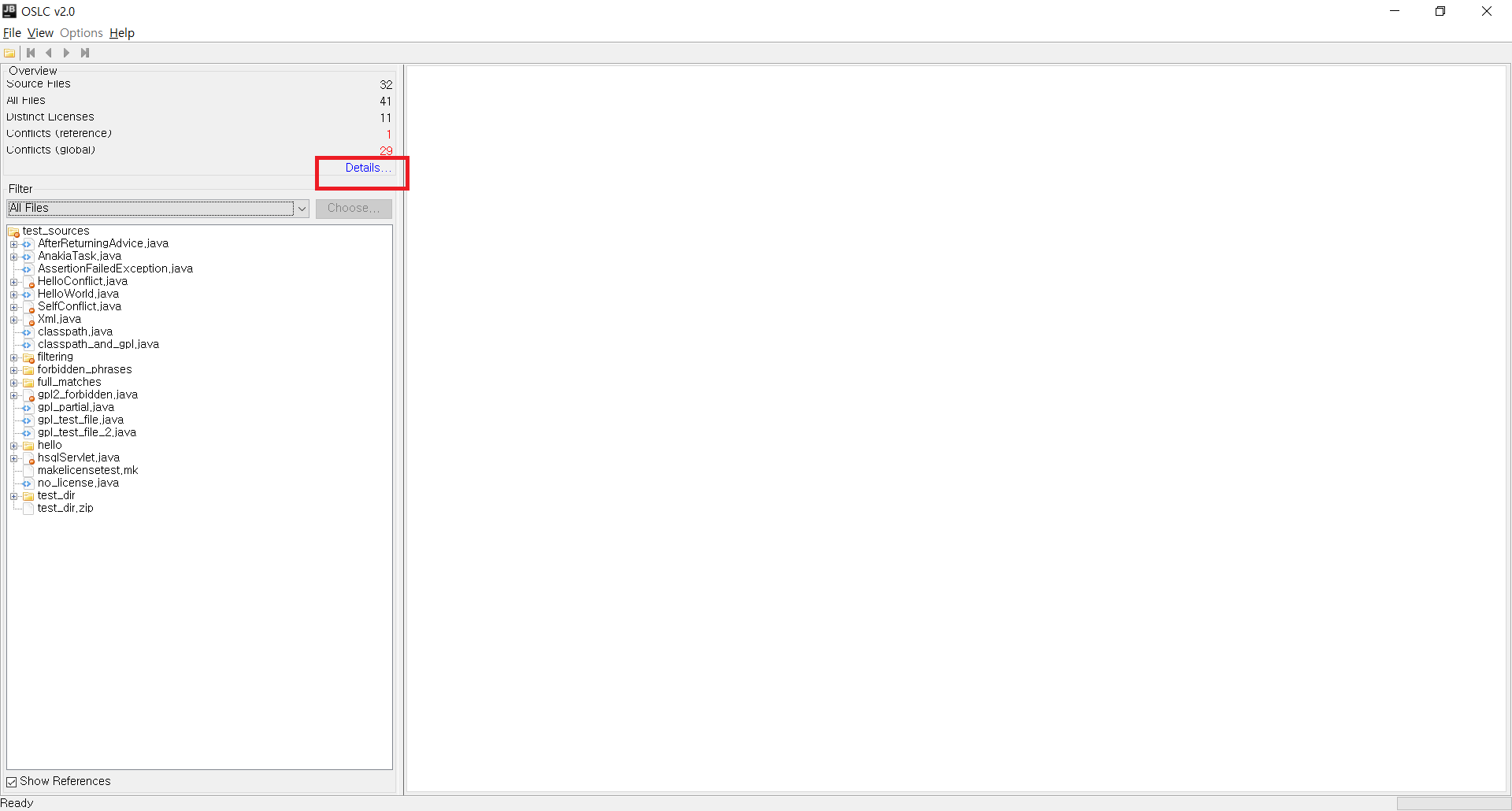 - File -> Open 소스 폴더 위치 선택하여 로딩 -> Details 선택