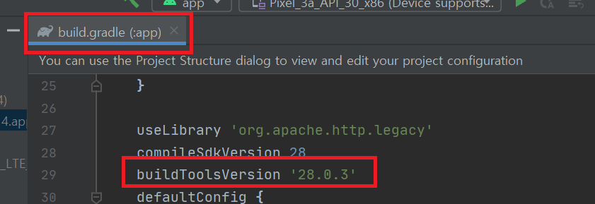 buildToolsVersion '28.0.3'