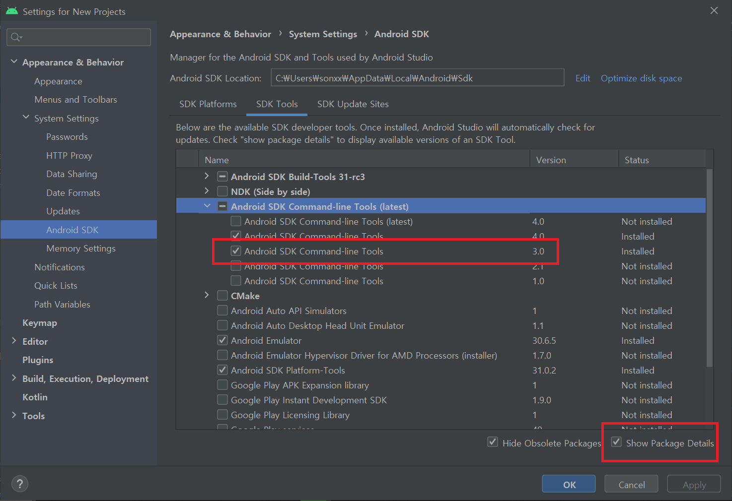 Enable Gradle 'offline mode' and sync project 클릭 할 경우 해결 되지 않음.