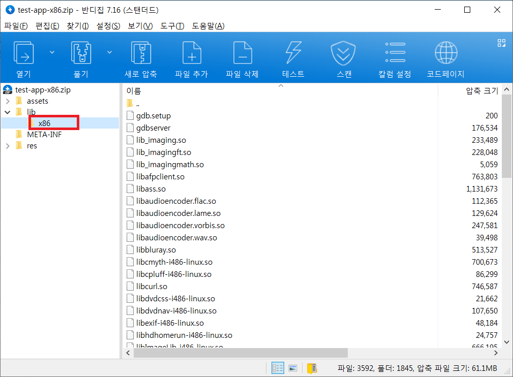 x86 so 로 빌드 되어 있는 경우 아래와 같이 "lib -> x86" 폴더에서 so 파일 확인 가능.