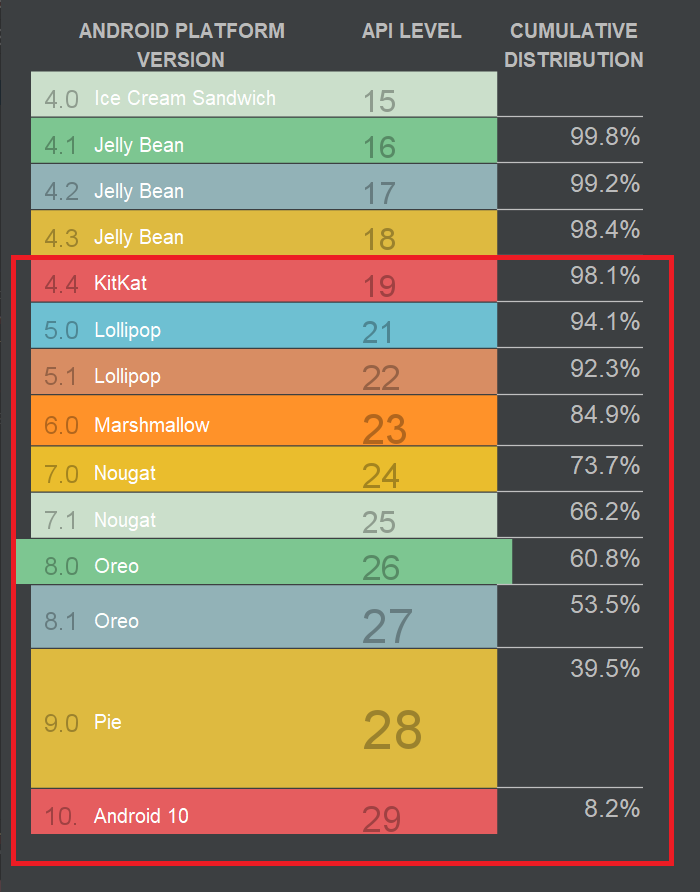 2021년 9월 3일 기준 OS 사용 Android 점유율 아래와 같습니다.