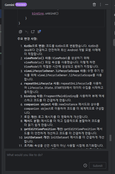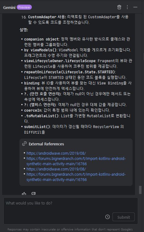 Android Studio Gemini 툴 기본 사용 방법 리뷰는 여기서 마무리 하겠습니다.😊