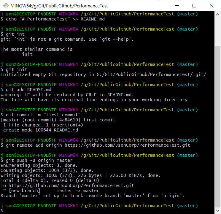 $ git remote add origin https://github.com/JsonCorp/PerformanceTest.git (프로젝트 git 경로)
