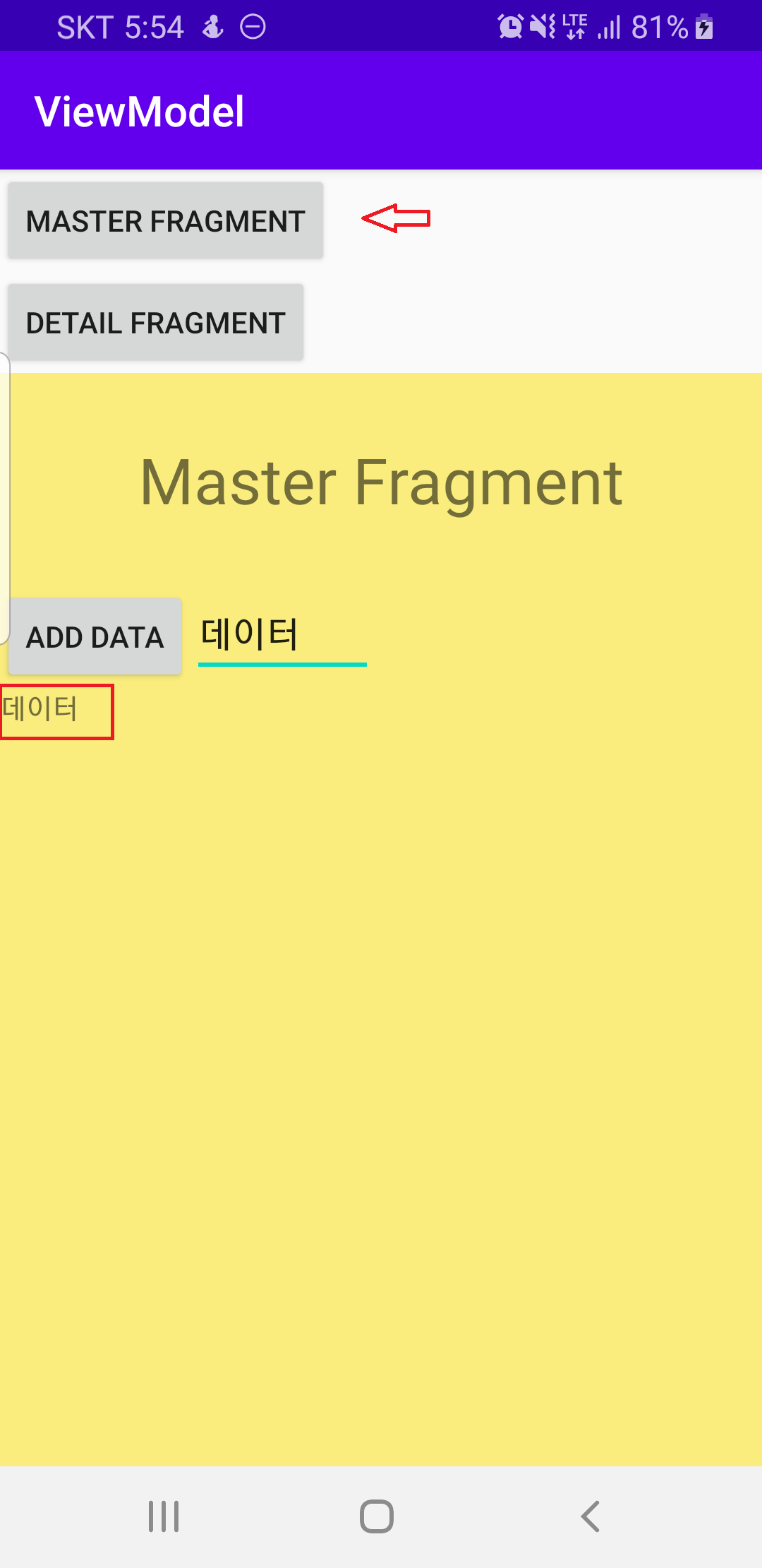 > 화면 이동 할 경우 Master Fragment에서 입력한 데이터 갱신