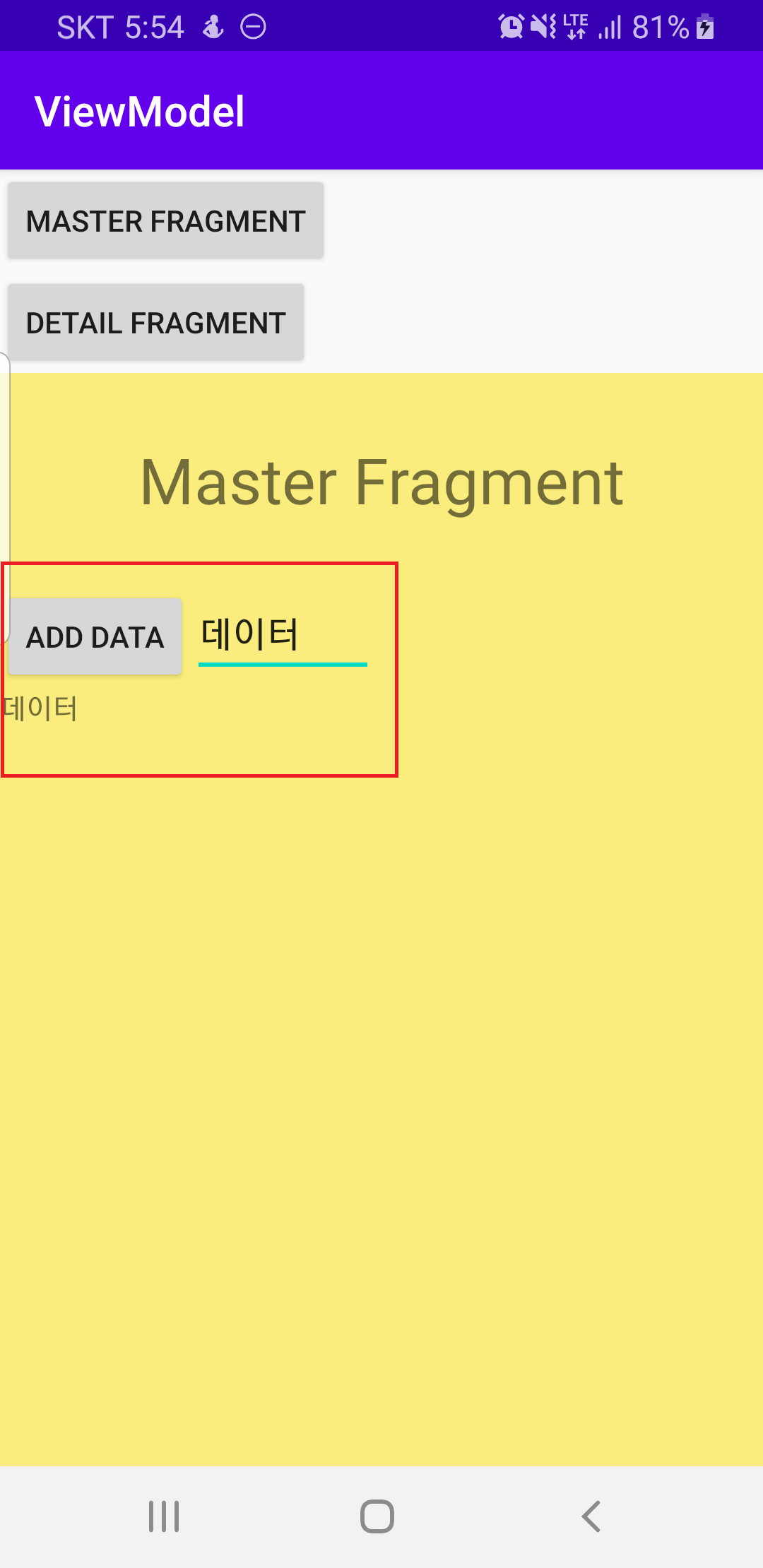 - 각 Fragment에서 데이터를 ViewModel 에 저장