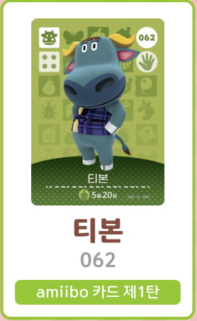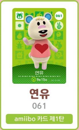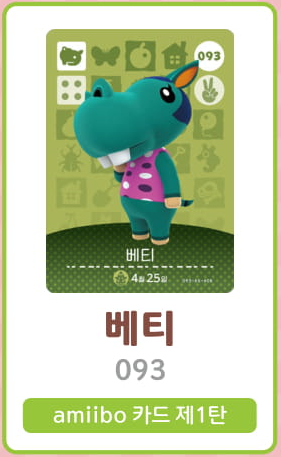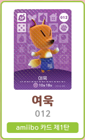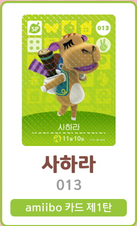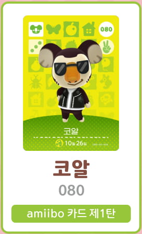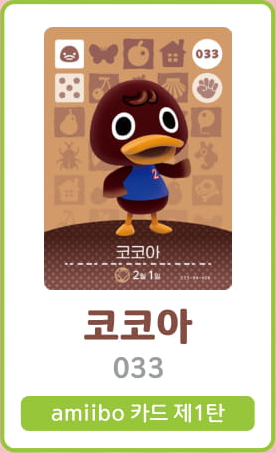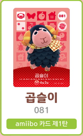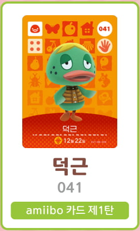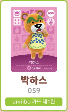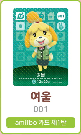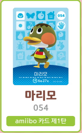 모여봐요 동물의 숲 아미보 카드 1탄 (주민 목록 이미지)
