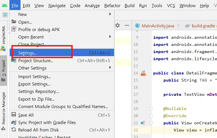simpleUML을 다운 받을 경우 Android Studio 상위 버전에서는 동작 하지 않음 (테스트 버전 Android Studio 4.0)