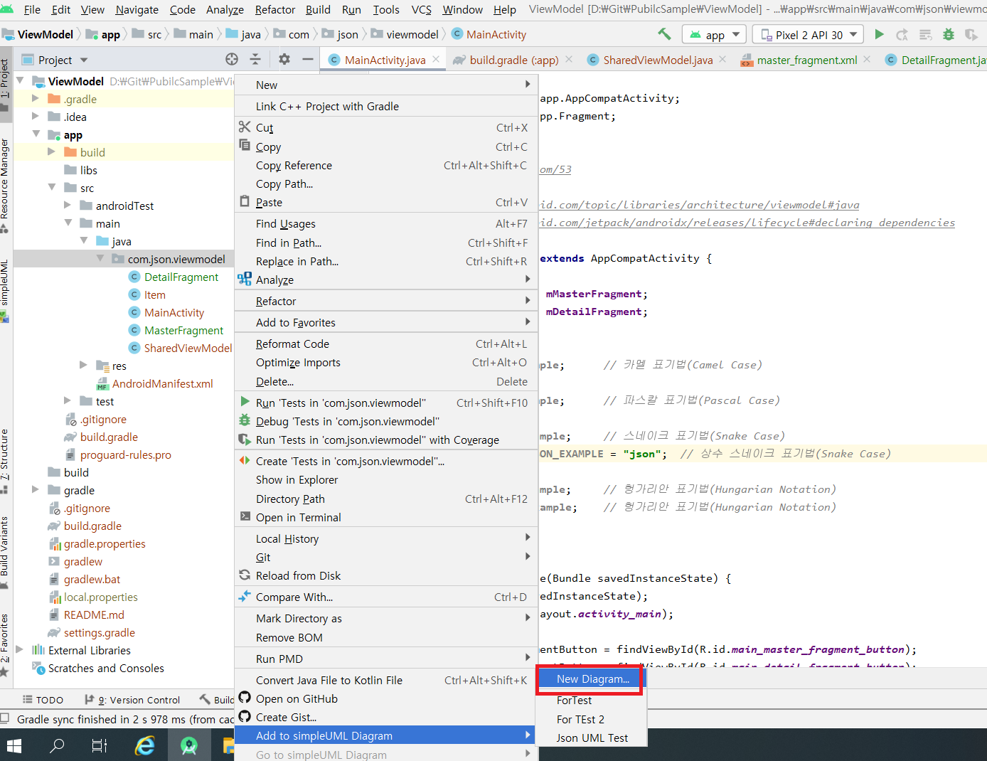 - Add to simpleUML Diagam -> New Diagram... 선택