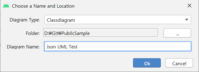 - UML 파일 생성 경로 및 파일 이름 선택 후 OK 버튼 클릭