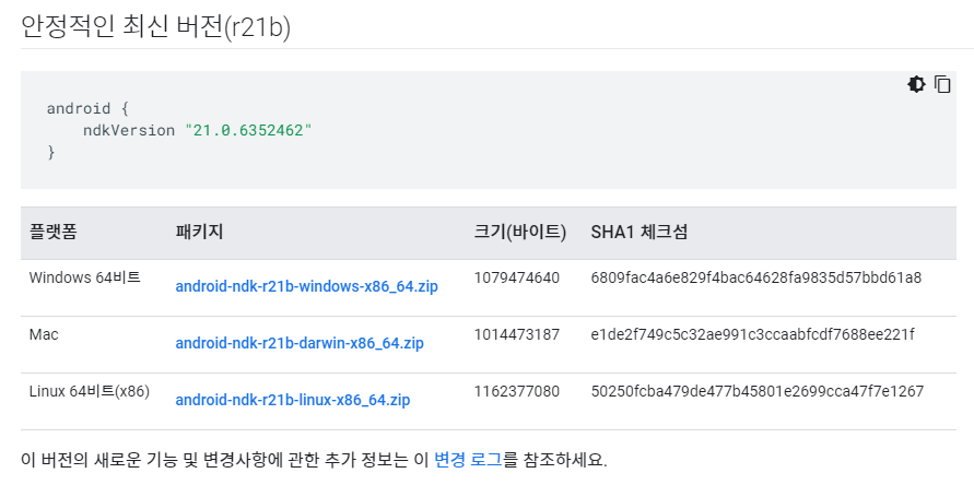 개발 플랫폼에 맞는 NDK 패키지를 선택합니다. NDK 최신 버전 및 이전 버전의 변경사항에 관한 정보는 NDK 버전 기록을 참조하세요. 현재 이용 가능한 Mac NDK는 서명이나 공증이 되지 않았습니다. And