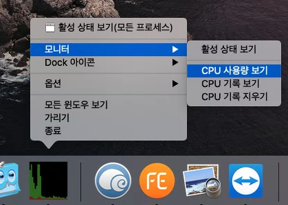 - Dock 아이콘 -> CPU 기록 보기