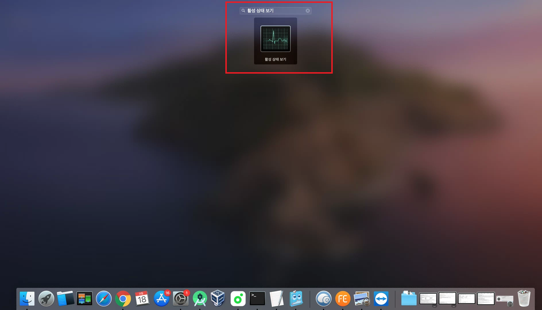 - 상단 검색 창에 "활성 상태 보기" 검색